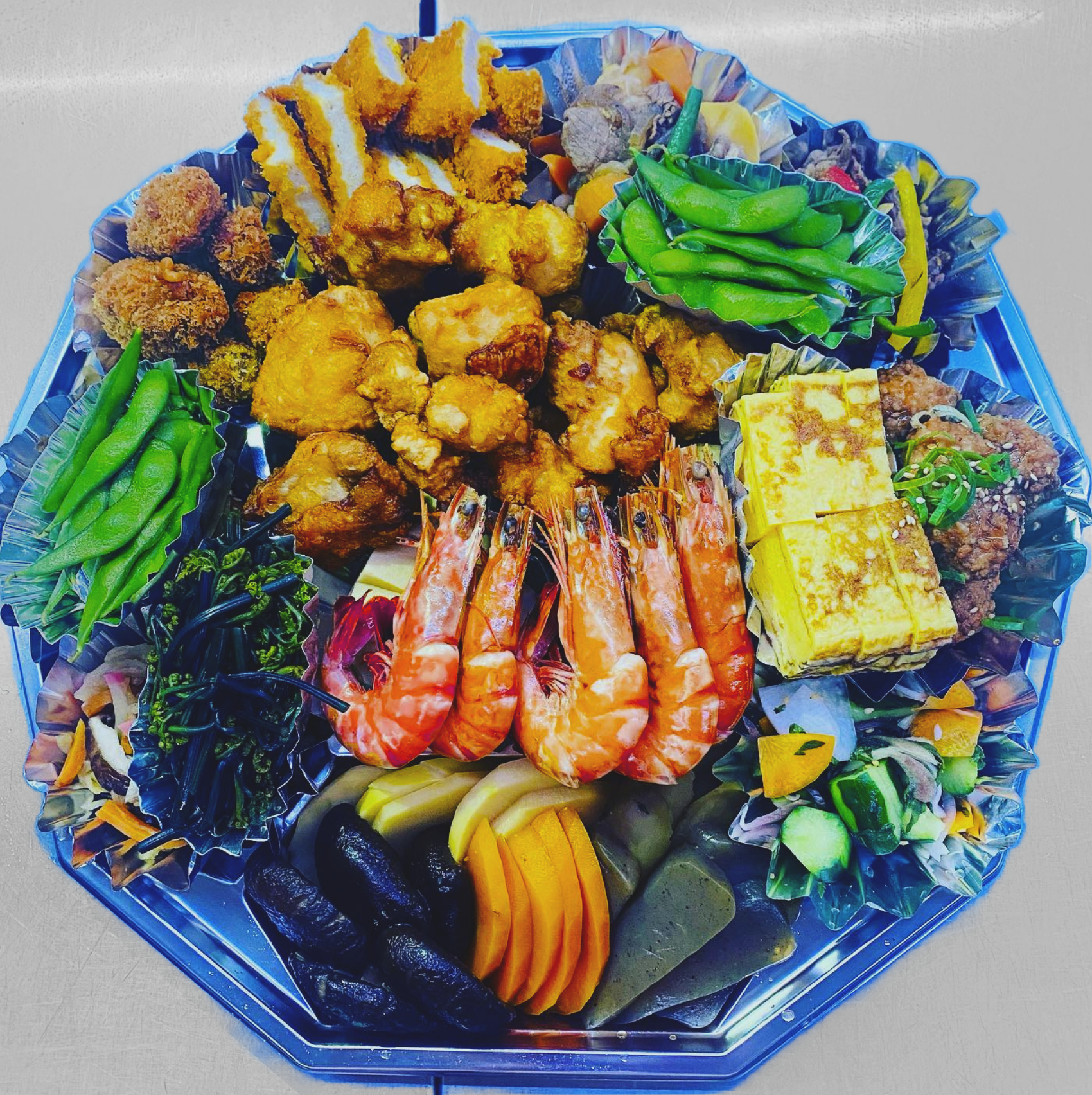 写真のお弁当は天ぷらやカサキ自慢の巻き寿司に