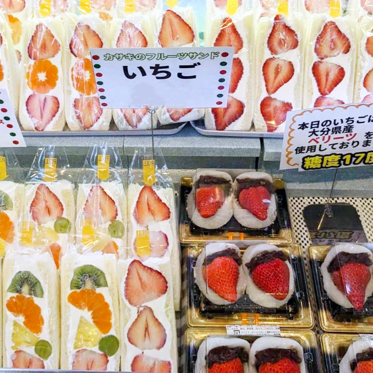 手作りあんこを使ったいちご大福を初め 季節のフルーツをふんだんに使用した フルーツサンドが最近では大人気です! 他にもその季節ならではのスイーツを ご用意しています。